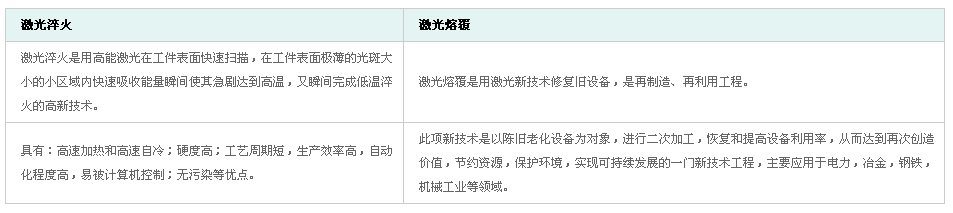 激光的表面熱處理主要有:激光淬火、激光熔覆。