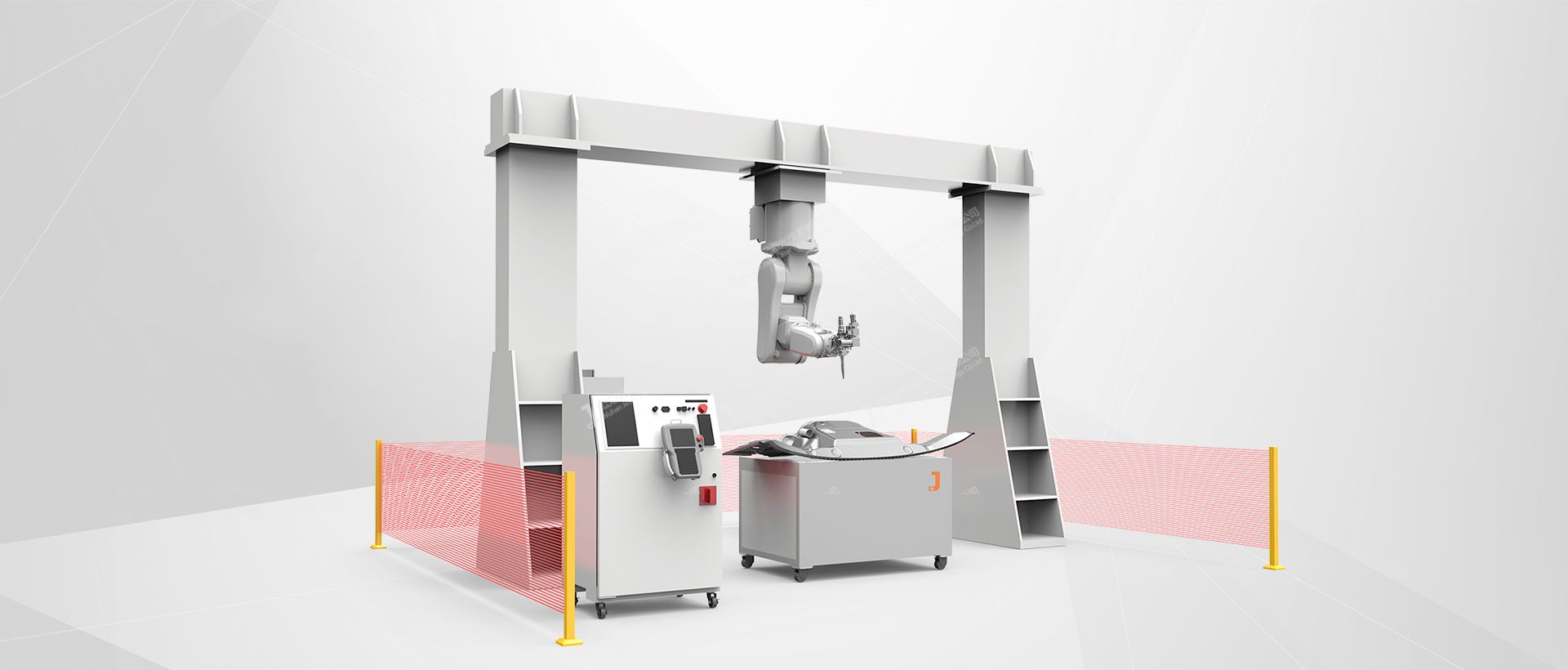 機器人采用龍門式吊掛安裝,工作范圍大,裝卸區接近性好,可以加工大