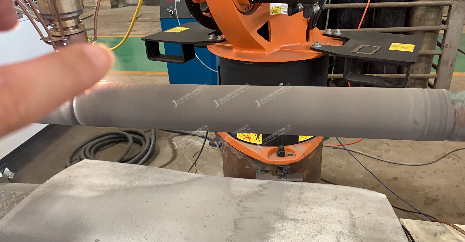 目前,我們金密激光生產研發的機器人激光熔覆機是結合了目前最先進的工業機器人手臂來完成熔覆加工。機器人靈活的機械手臂能夠按照操作人員的要求去完成一系列的動作,通常也可以實現遠程監控,預先編程等自動控制功能,因此可以應用在危險或有危害的環境之中。金密激光將機器人手臂和激光熔覆技術融合在一起,可謂是給激光熔覆設備錦上添花,讓熔覆加工更加靈活高效。