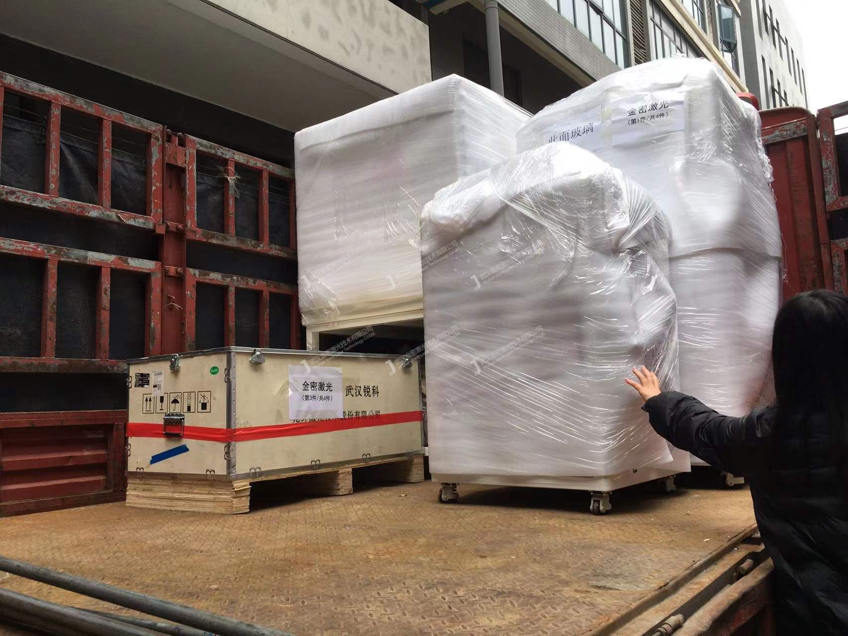 2022年1月5日,寒冷的冬天,天氣依舊是陰雨連綿,讓人倍感寒意,但是金密激光的員工還是冒雨忙碌的為今日裝車出貨設備做起了準備工作,今天要發貨是四川某高校實驗室需要用到的密封艙激光熔覆機.